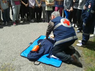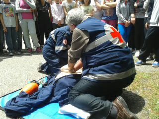 Giovedì 06 giugno, mezz’ora prima che suonasse la campanella di “fine delle lezioni”, gli alunni della Scuola Secondaria di 1° Grado di Curinga, intenti nelle loro rituali attività didattiche, hanno avvertito, a sorpresa, il suono di allarme antisismico. Dopo aver eseguito le ormai conosciute e rodate procedure di autoprotezione e di evacuazione dell’edificio, alunni e personale scolastico hanno assistito ad una simulazione la cui scena prevedeva il Primo Soccorso prestato ad una persona (simulata da un manichino) la quale, a causa del panico, uscendo dalla scuola, ha avvertito malore con perdita di coscienza, che, successivamente al primo soccorso, sarebbe stato diagnosticato come conseguenza di un infarto.