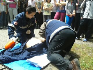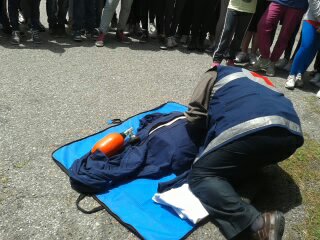 Ecco una sintetica ed esemplificativa dimostrazione fotografica delle pratiche di rianimazione cardio-polmonare con l’ausilio del defibrillatore semiautomatico simulate giovedì.